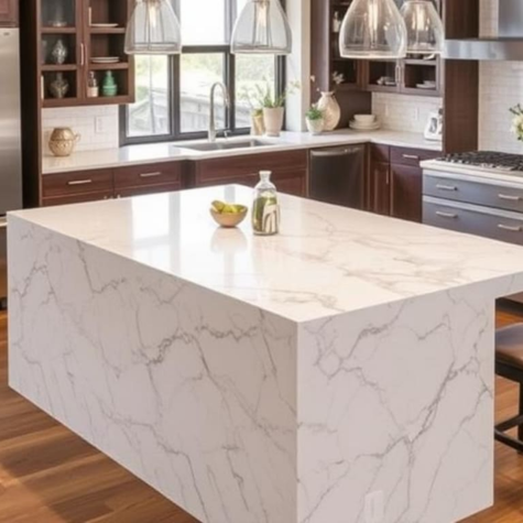 Quartz is a strong, non-porous, and visually appealing engineered stone made from natural quartz crystals combined with resins and pigments. It offers exceptional durability, resistance to stains, scratches, and moisture, making it ideal for kitchen countertops, bathroom vanities, flooring, and wall cladding. Unlike natural stones, quartz surfaces require no sealing and offer consistent color and pattern throughout. Available in a wide range of designs—from natural stone-like appearances to modern minimalist finishes—quartz combines elegance, functionality, and low maintenance, making it a popular choice in contemporary interiors.